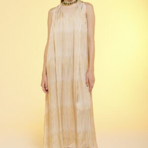 VESTIDO LARGO CON ENCAJE Y PLISADOS