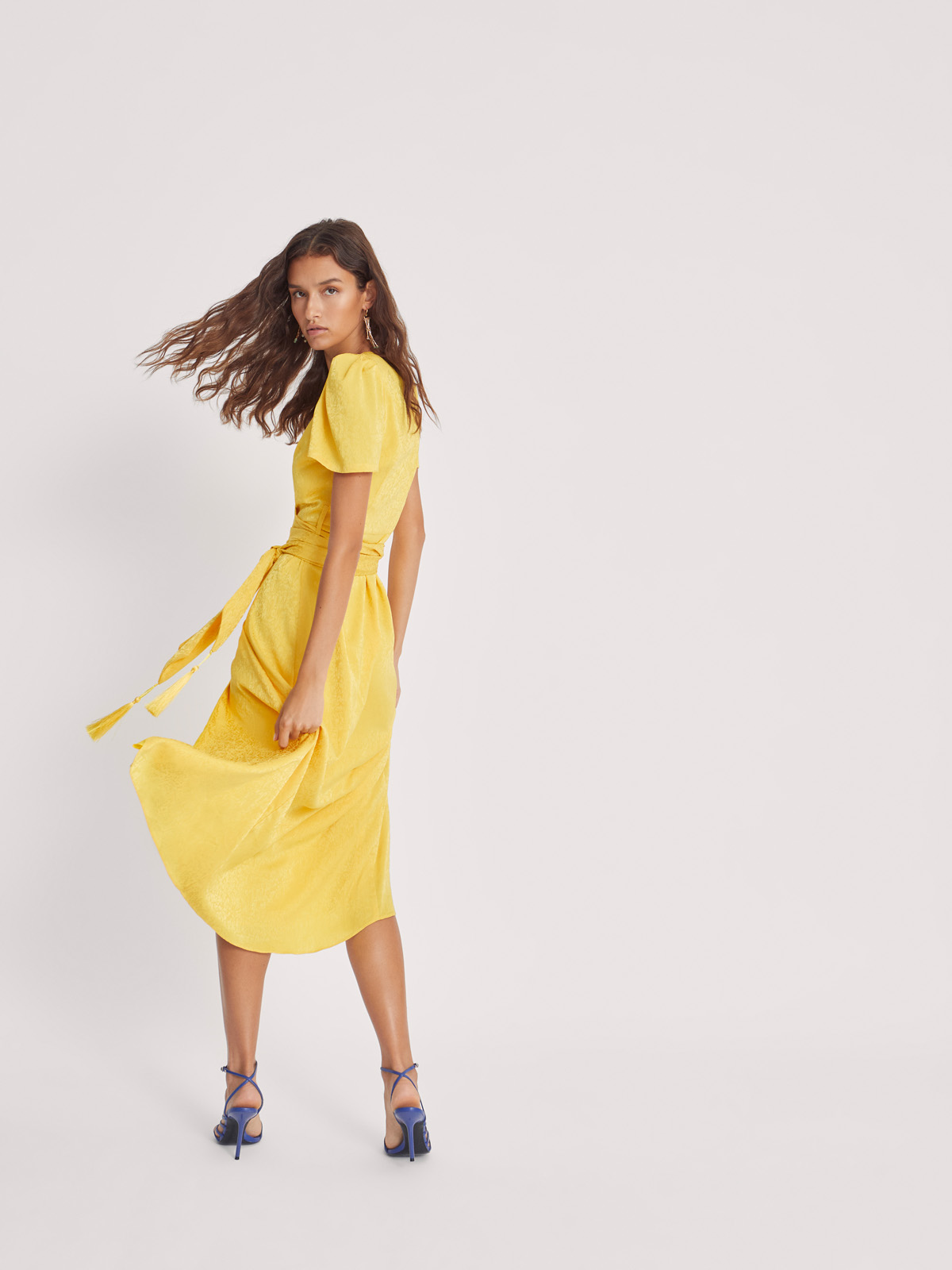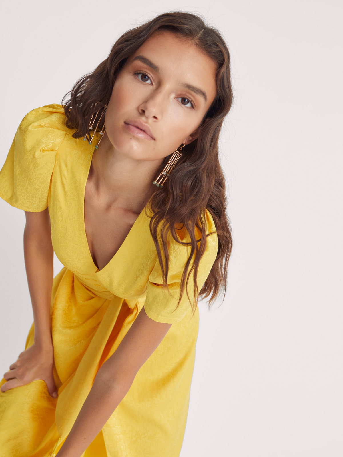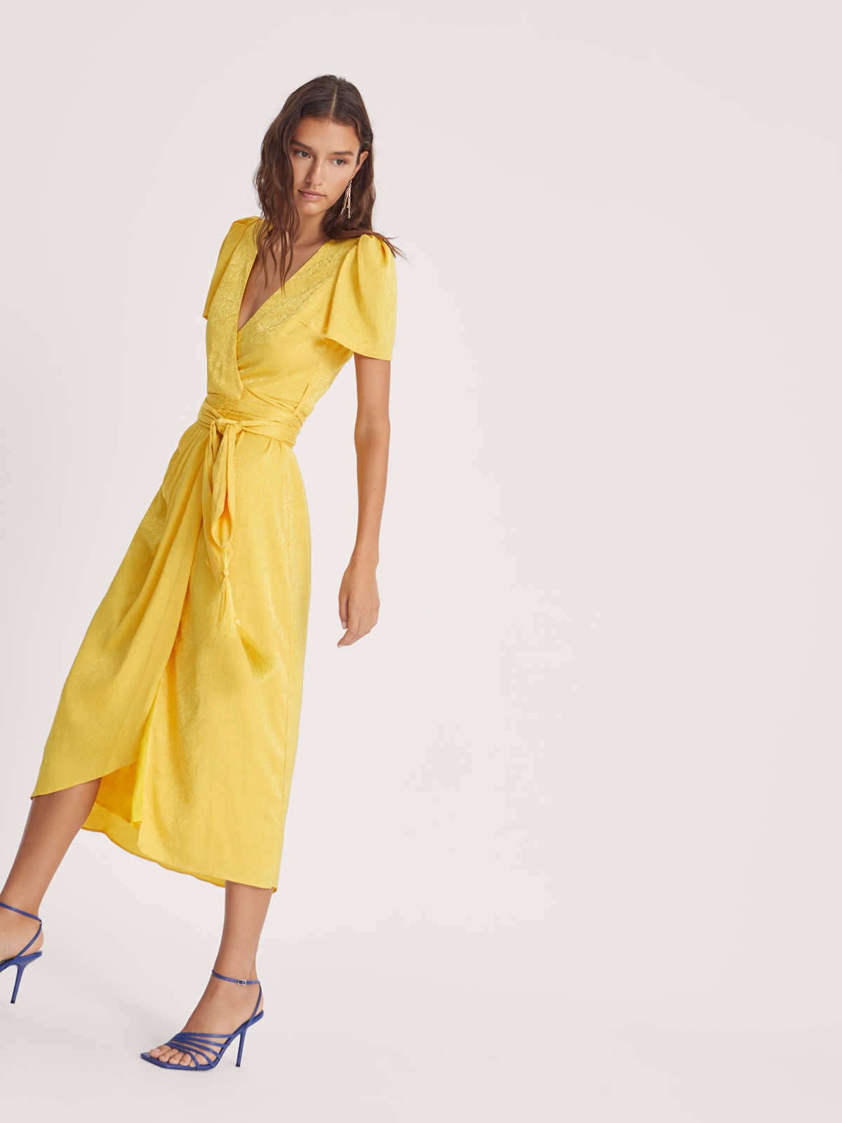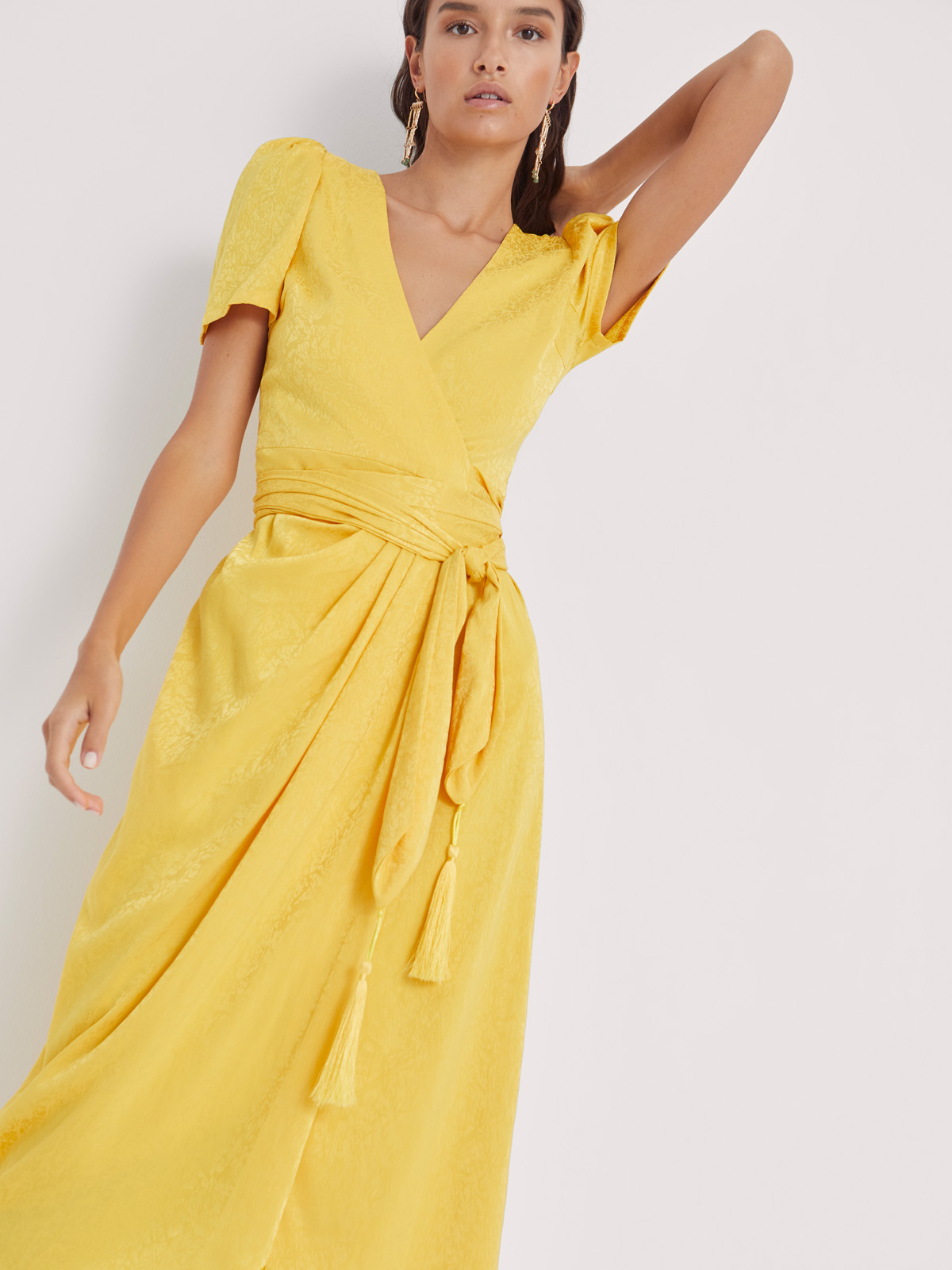 AUDREY – Vestido wrap de Jacquard amarillo