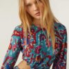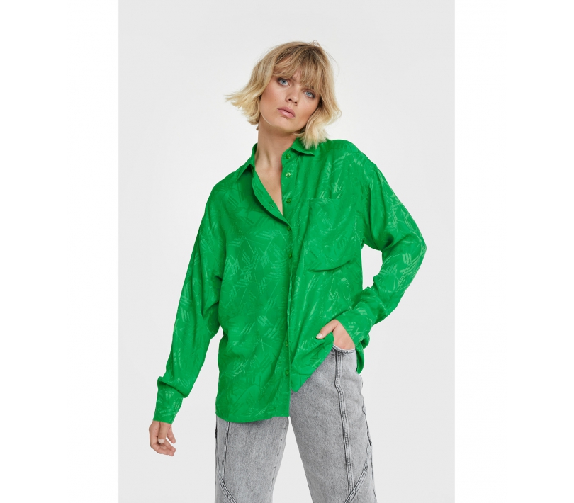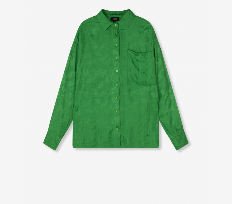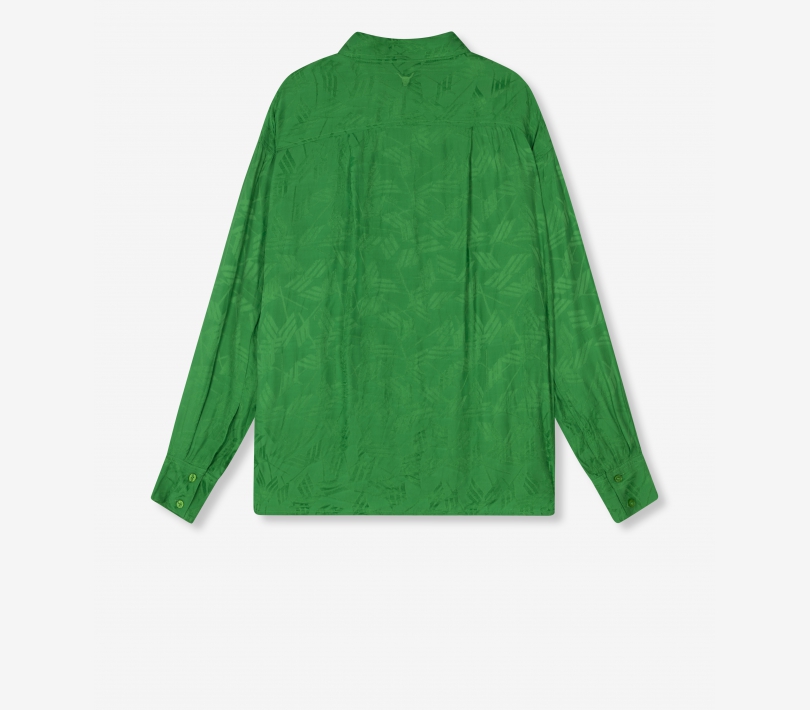 Blusa fluida confeccionada en tejido jacquard gráfico. Diseñado con cuello clásico y un bolsillo delantero. Con un pequeño toro bordado en la espalda