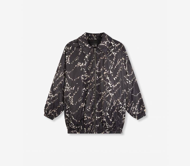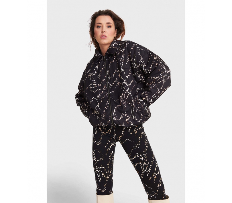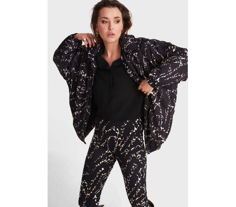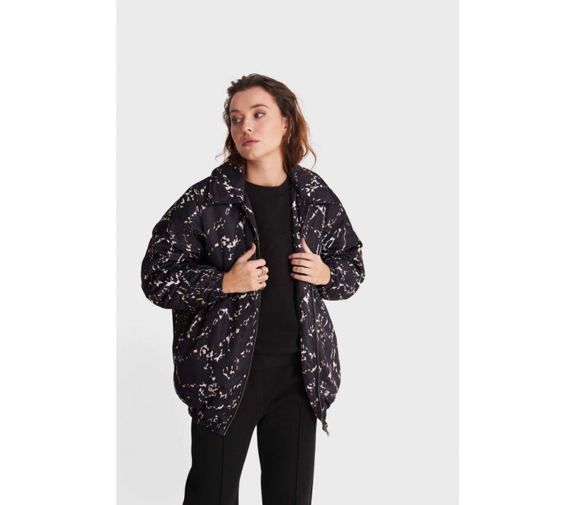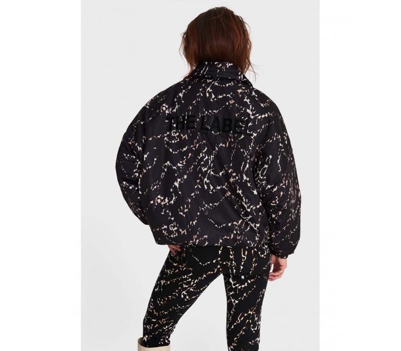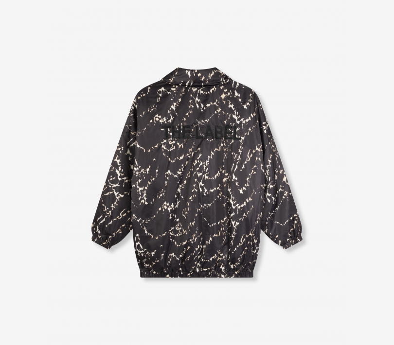 Chaqueta acolchada oversize confeccionada en tejido de nailon. Con estampado animal print all over. Diseñado con una obra de arte ‘THE LABEL’ en la parte posterior.