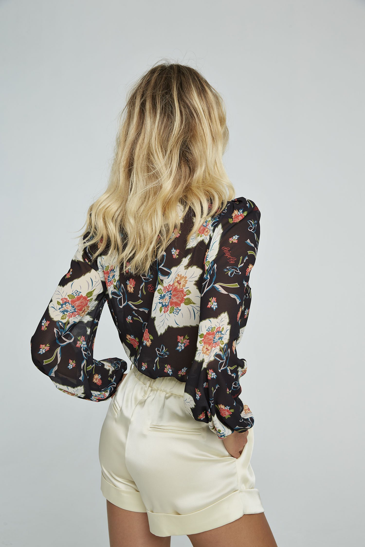 CHEMISETTE/CAMISA NANCY DE TEJIDO FLUIDO ESTAMPADO CON MANGAS RIZADAS EN LA MUÑECA.