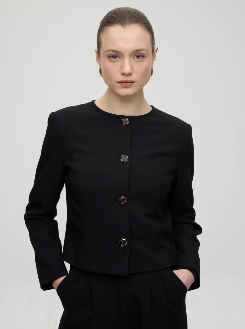 FORT JACKET – Chaqueta cuello redondo negra botones