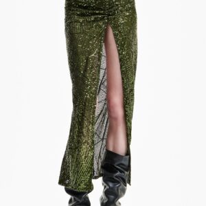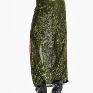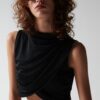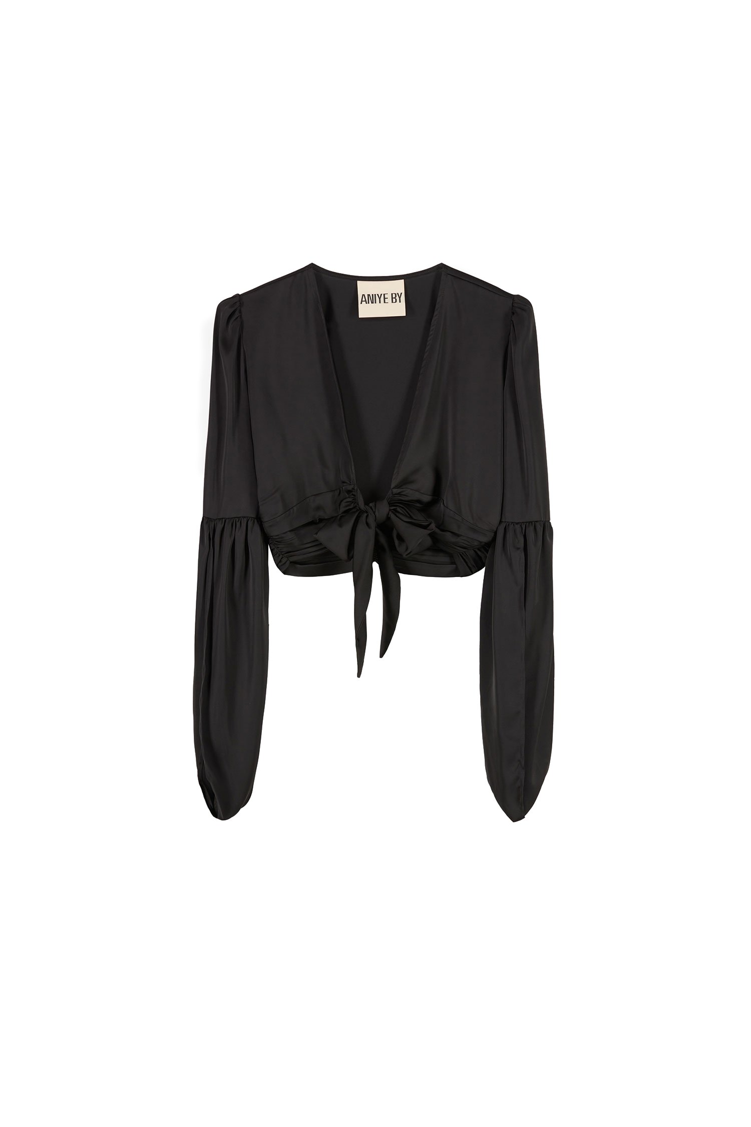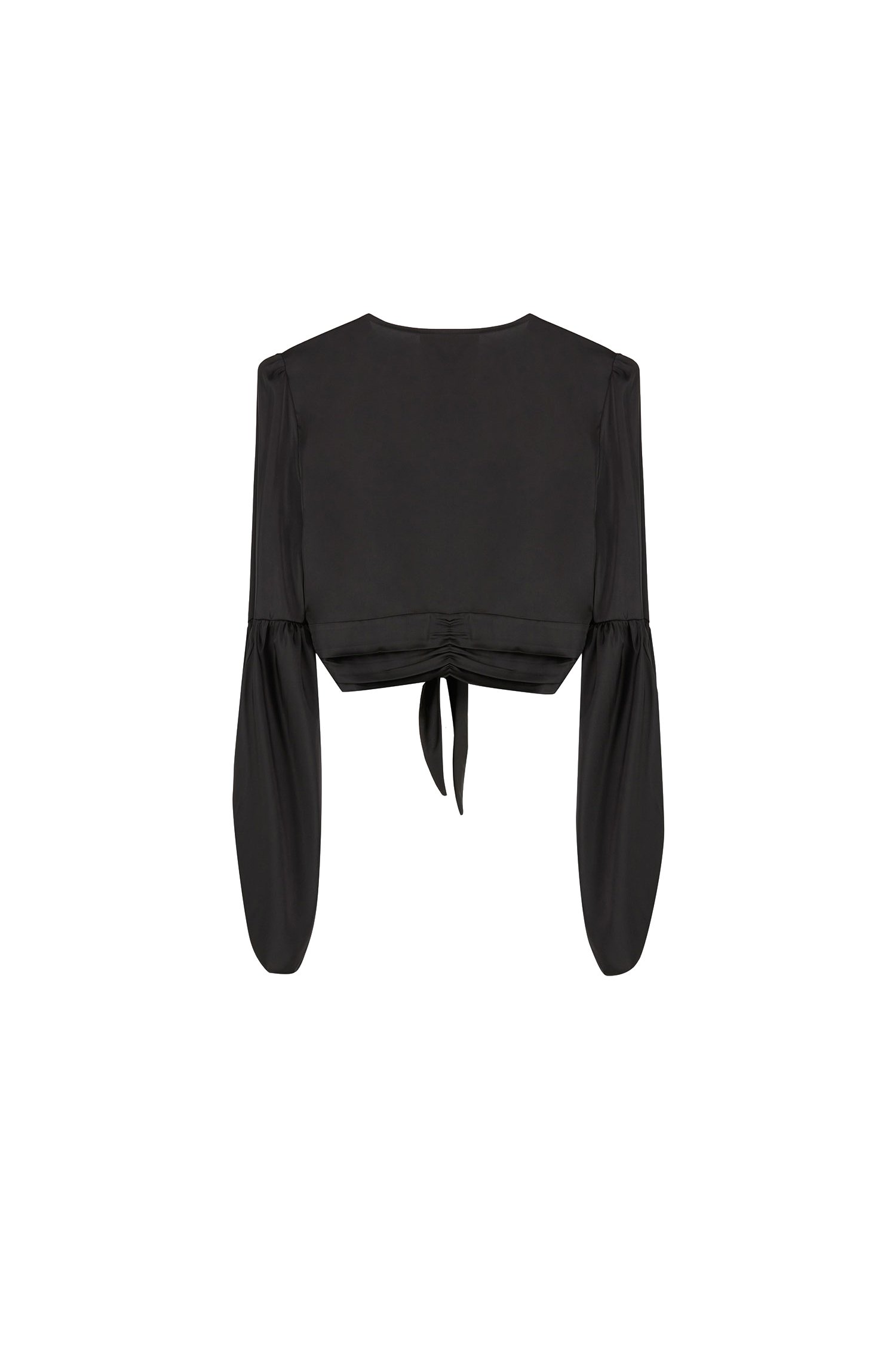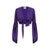 Top fluido de satén con mangas largas anchas.