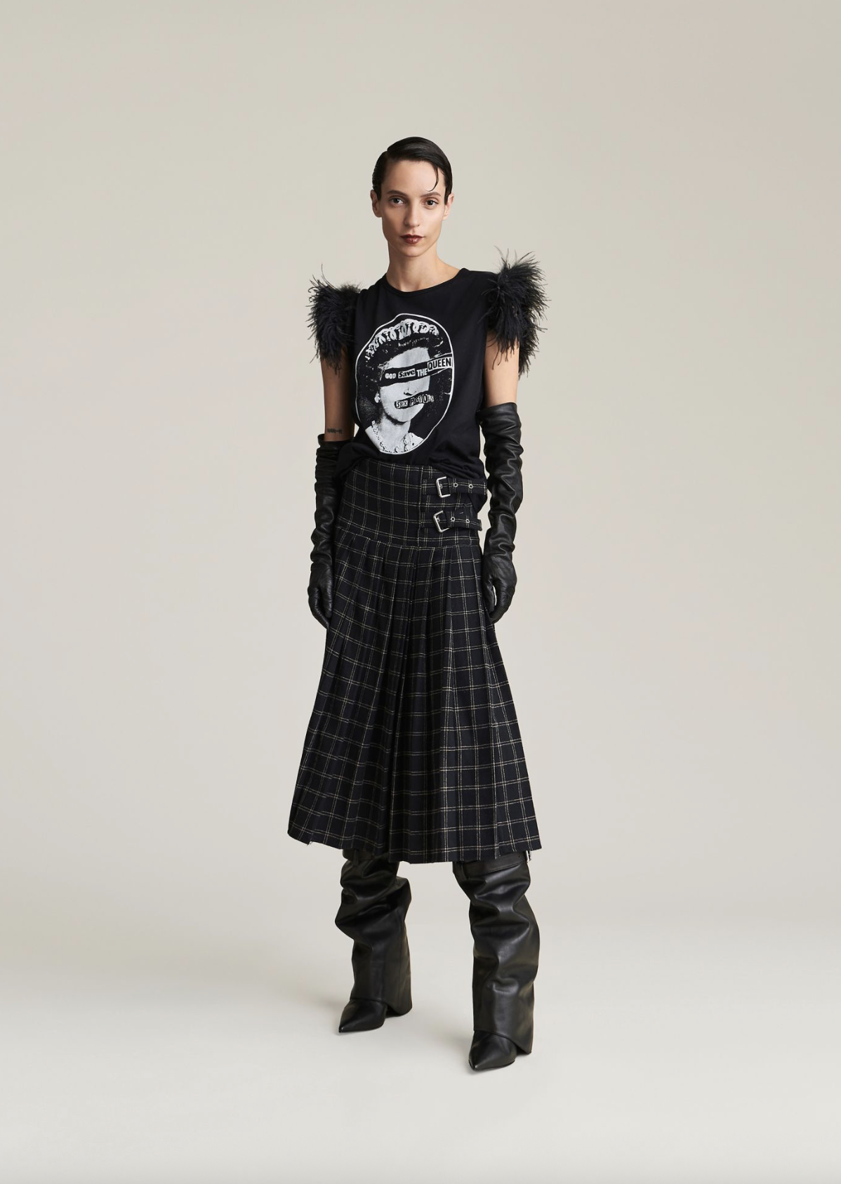 La actitud vanguardista y el espíritu punk se combinan con toques delicados. Esta camiseta de sex pistols es un estudio de contrastes: el atrevido estampado frontal rinde homenaje al espíritu rebelde de la banda, suavizado por delicadas plumas que enmarcan las mangas. las letras Aniye by en la parte trasera le dan un toque de marca.