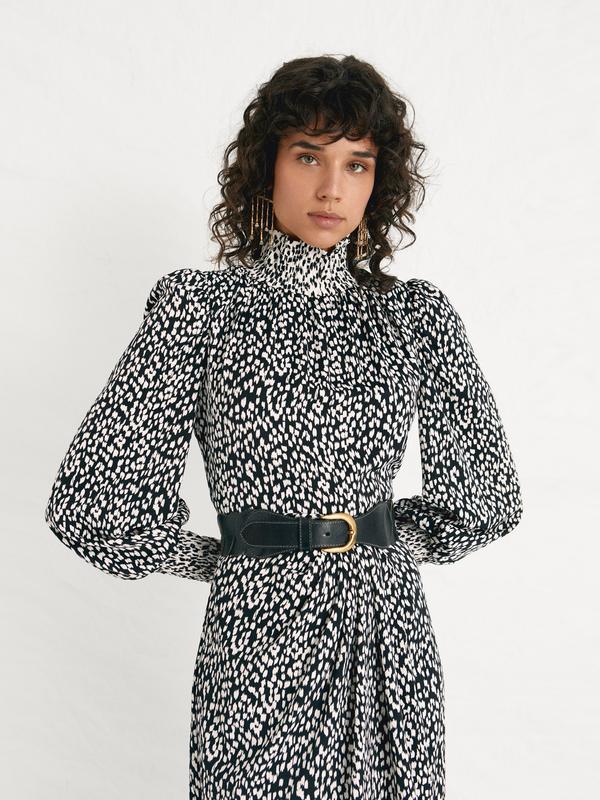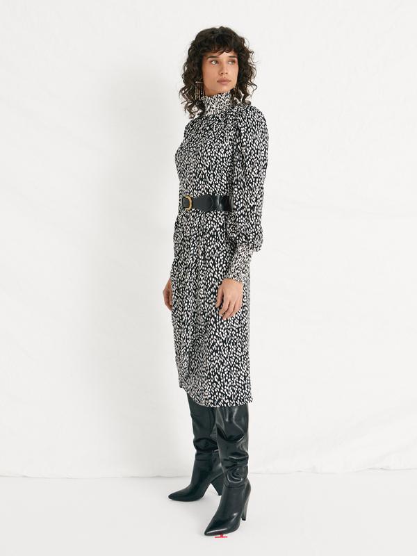 TURLINGTON – Vestido midi bicolor b/n abstracto