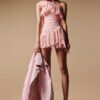 Vestido mini de encaje de Sangallo con tirantes finos.